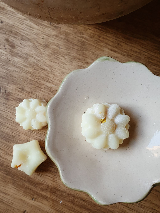 Chaque fondant est réalisé à partir de cire végétale et européenne de colza & parfum de Grasse sans CMR ni phtalates.